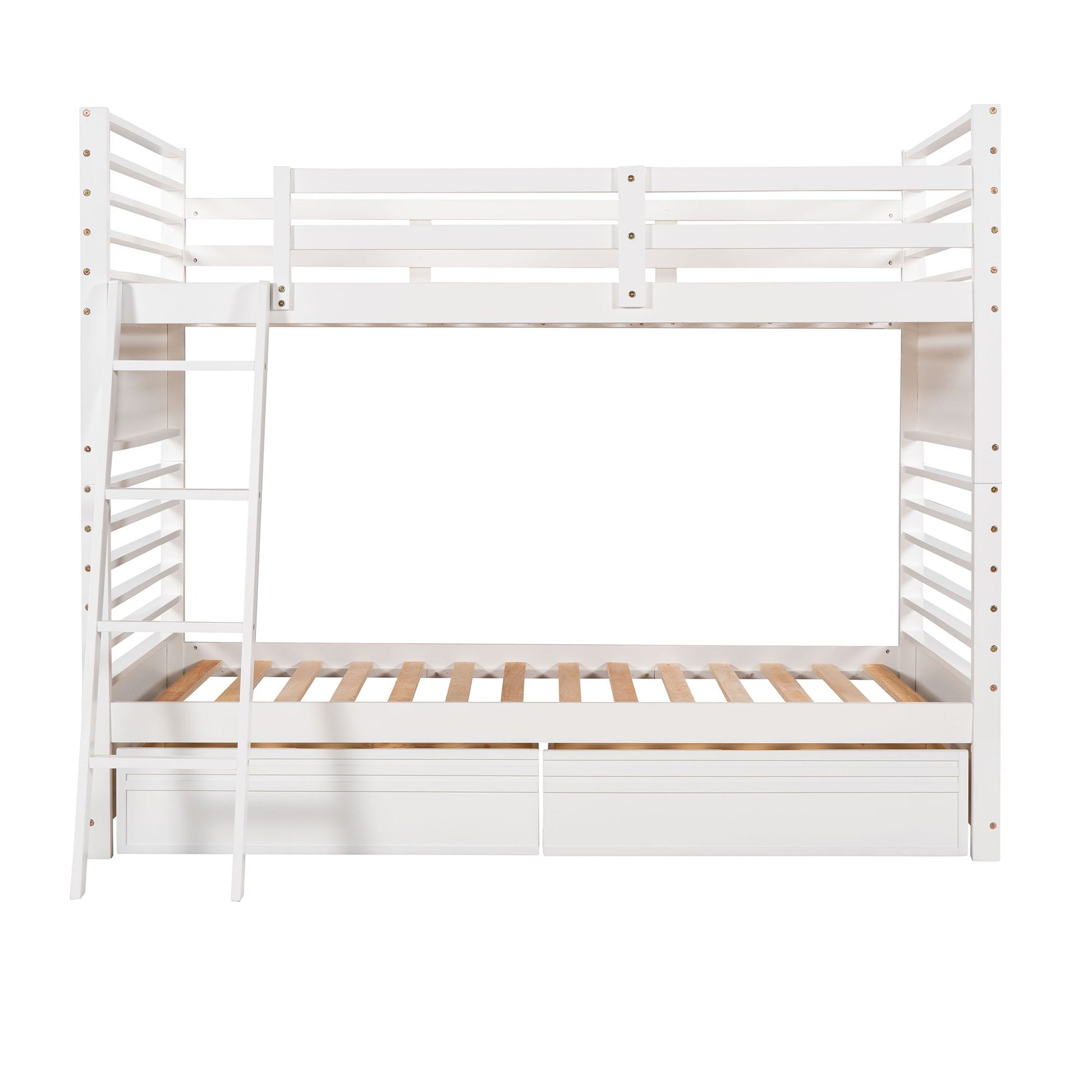 Twin Over Twin Bunk Bed With Two Drawers - White