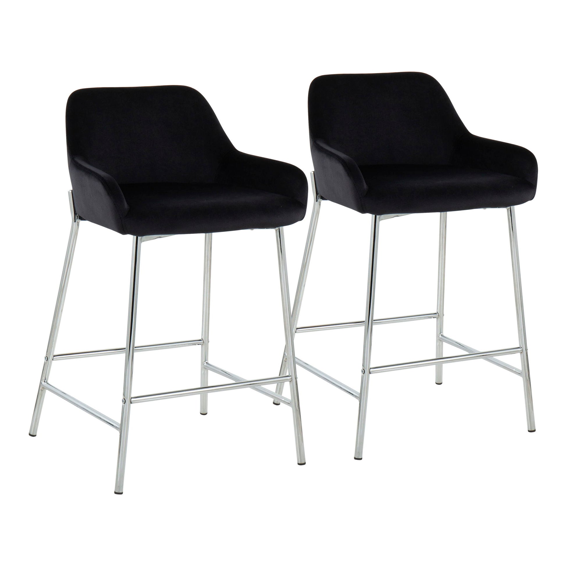 Daniella - Contemporary Fixed Height Counter Stool (Set of 2) - Chrome / Black