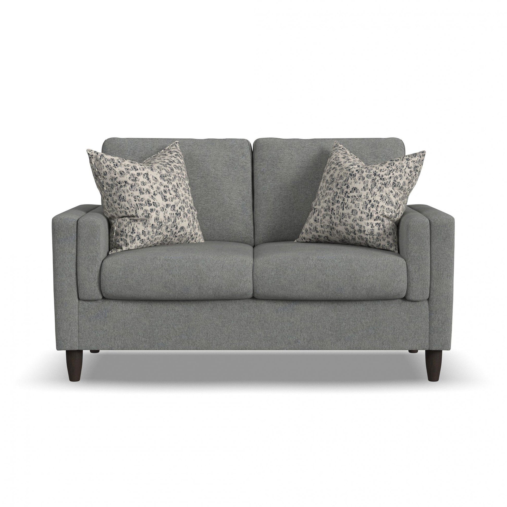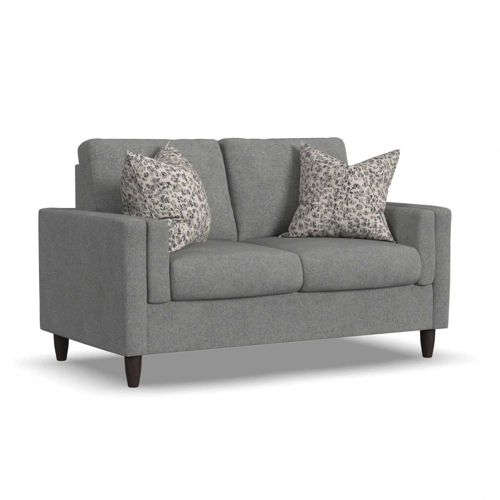 Retro Revival. Experience timeless appeal with a modern twist with the Thomas loveseat. Inspired by classic mid-century style and vintage Flexsteel designs, this loveseat features layered arms, round tapered legs and bullnose cushions. Create the perfect style for your home with your choice of upholstery and pillow fabrics. Sized for ultimate versatility, the Thomas loveseat brings casual sophistication and unmatched comfort to any living space.