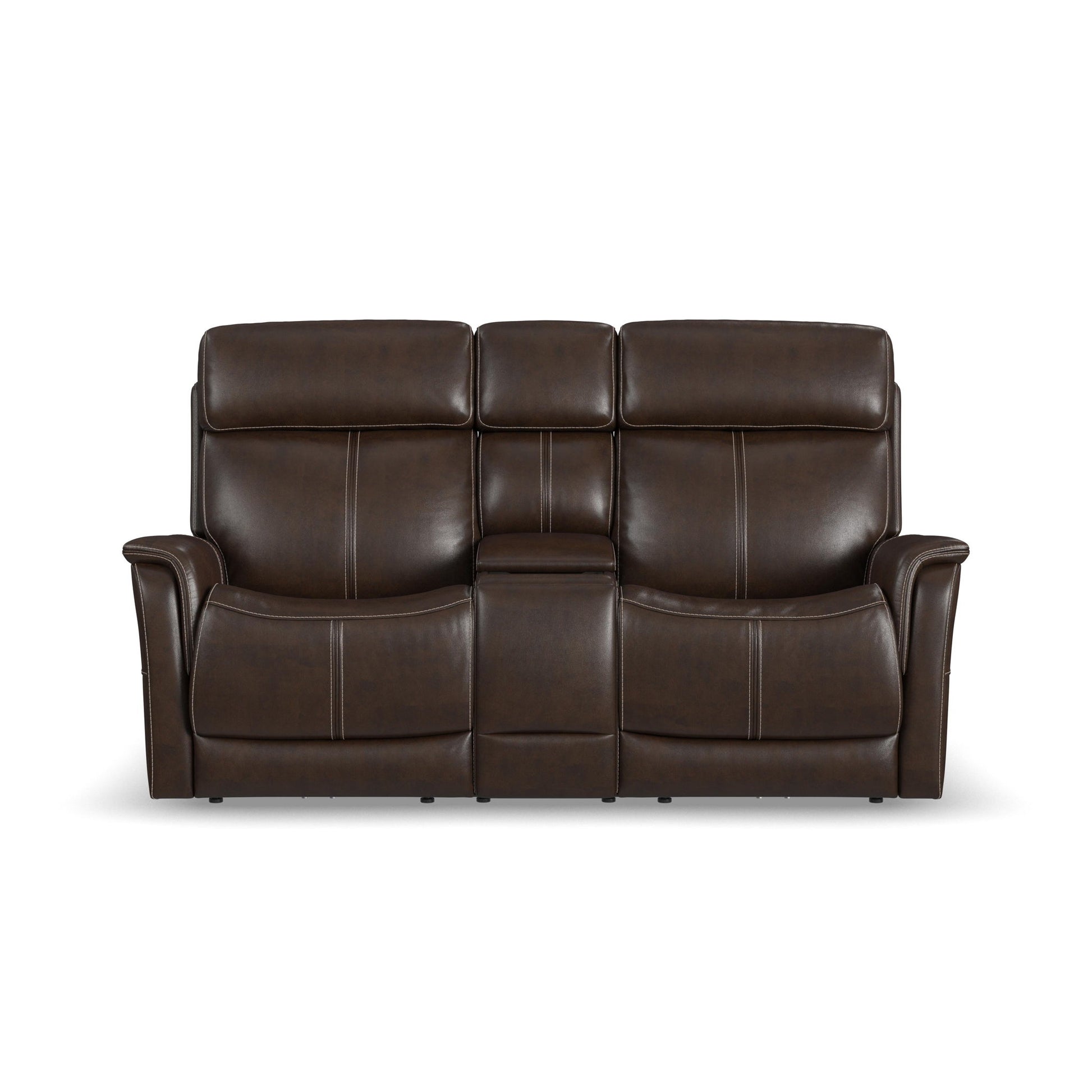 View - Power Reclining Loveseat With Console, Power Headrest & Lumbar - Dark Brown