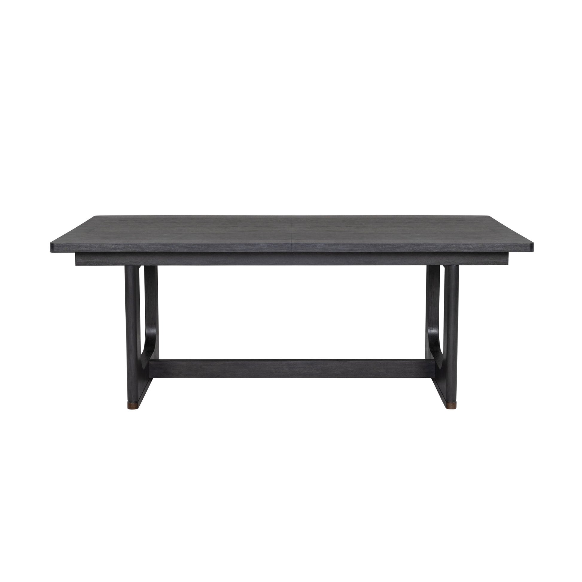 The perfect centerpiece for your next dinner party, this gorgeous dining table brings the ultimate in transitional style. The deep ebony finish fits seamlessly with the rich brown base accents for an on-trend color combination. Meticulously crafted from rubberwood solids and oak veneers, this piece is built to be everlasting. Complete with an 18” inch butterfly leaf that extends the table to a vast 100”, you’ll have ample space to host up to eight guests. The graceful namesake waterfall edges give this table true elegance.