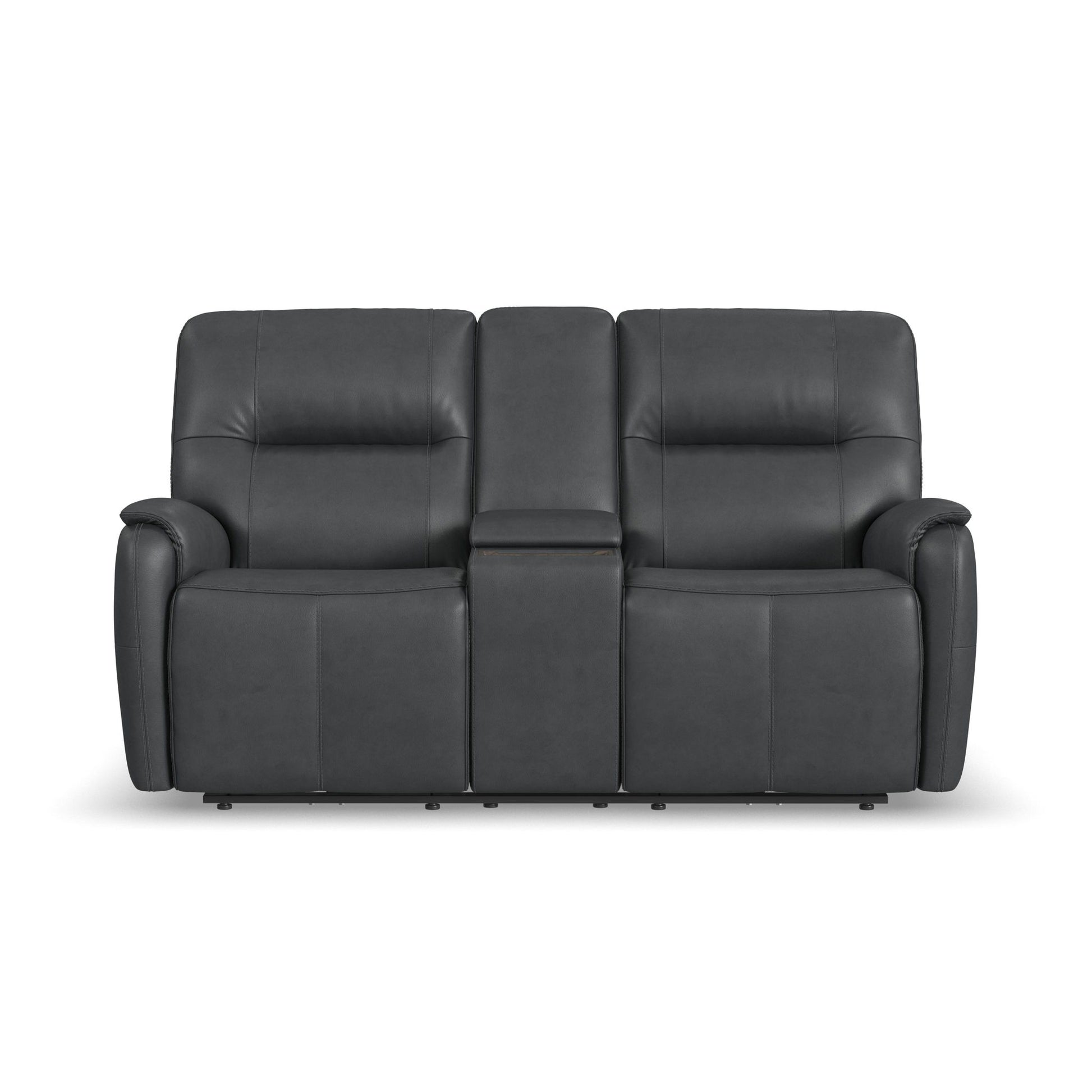 Add sleek sophistication to your living spaces with the Wilson power reclining loveseat with console. Its thin profile design and subtle curves lend a timeless, elevated style, while a handy console offers convenient storage. The pad-over arms, waterfall chaise and center-divided back provide unmatched support for effortless relaxation, while the power recline and headrest allow for customized comfort. Upholstered in a high-quality, cafe brown top grain leather, this loveseat features Flexsteel's patented Blue Steel Springâ„¢ at the heart of each seat, proving unmatched comfort and durability that you can count on.